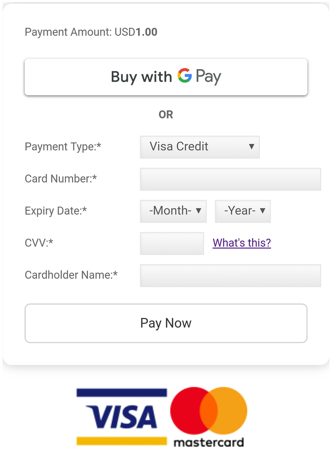 Google Pay is enabled on the Gateway for TSYS Saratoga and Elavon Processors only, supporting the following card types: VISA, MasterCard, Discover/Diners, AMEX and JCB.