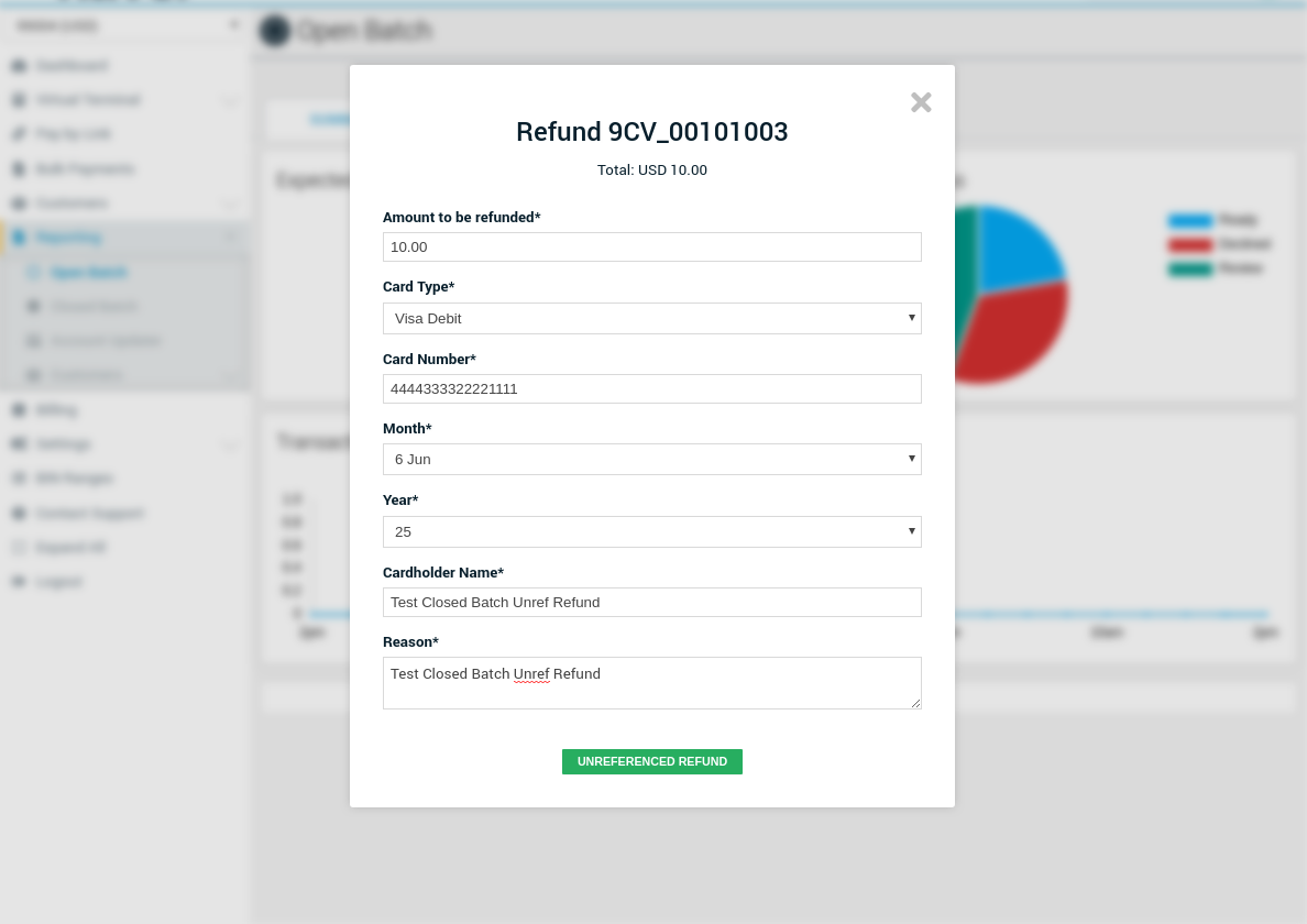 5. Closed Batch - Complete Unreferenced Refund form (use a different card number).